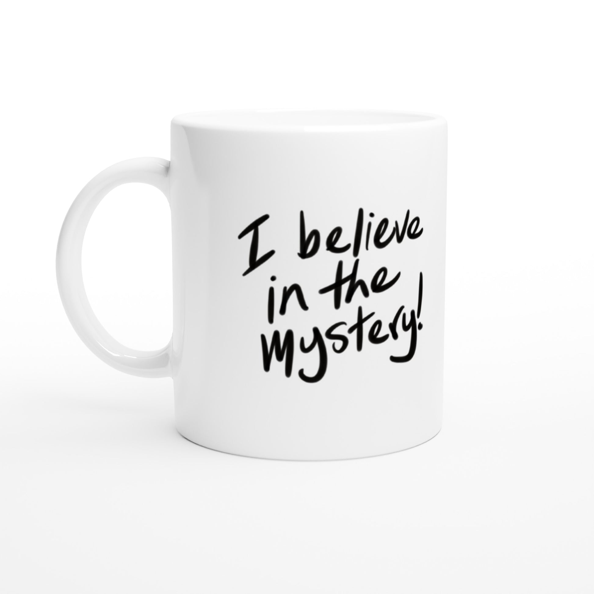 'I believe in the Mystery!' Black on white White 11oz Ceramic Mug