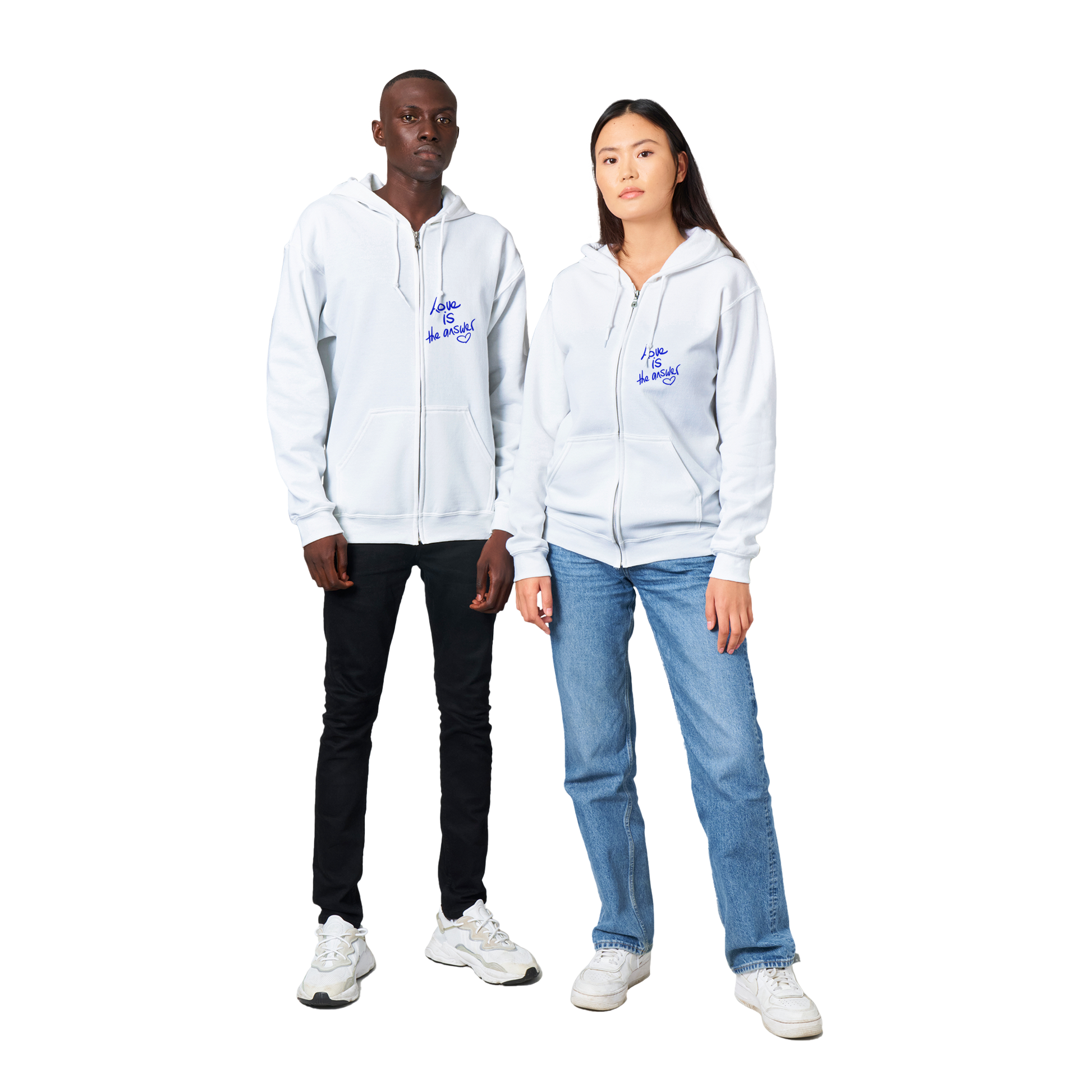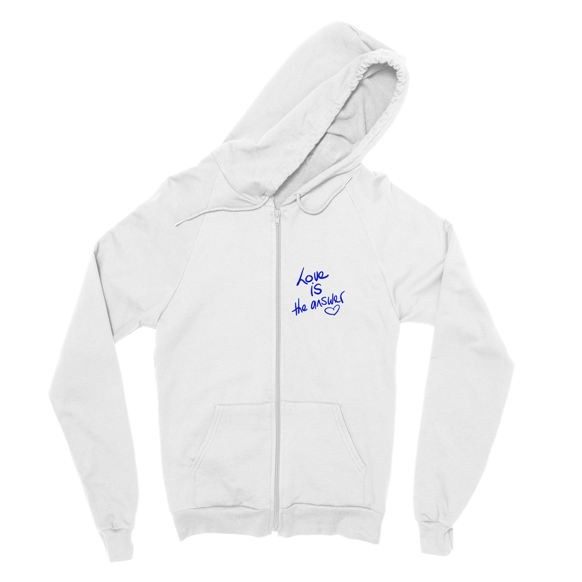 'Love IS the answer' Classic Unisex Zip Hoodie (pocket print). Free Shipping.